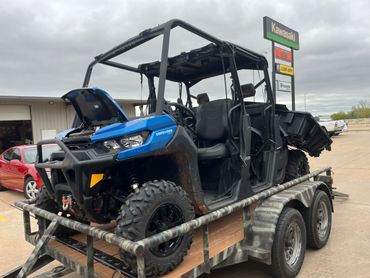 "Call anytime to transport your motorcycle, golf cart, trike, quad, or lawnmower for service, repair, or transfer, from your business, home, or roadside to any destination you desire. Rate is $1.50 per loaded mile, $50 minimum. Over 100 miles from origin to destination or if the destination is out of Oklahoma? Contact me. I love to travel and we can arrive at a fair price for both of us!"